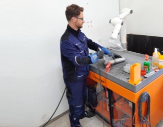 Um die geschweißten CrNi-Stähle anschließend im Nahtbereich wieder korrosionsbeständig zu machen, kann ein elektrochemisches Reinigen mit Kohlefaserpinsel oder ein Strahlen mit Glasperlen in einer Strahlkabine ebenso mit angeboten werden.